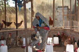 • Distribution de 70 poules reproductrices, 93 sacs d’aliments pour volailles, des produits vétérinaires, des mangeoires, des abreuvoirs et d’un incubateur communautaire d’une capacité de près de 530 œufs composé d’un système d’énergie solaire à trois groupements de producteurs avicoles (90 ménages).